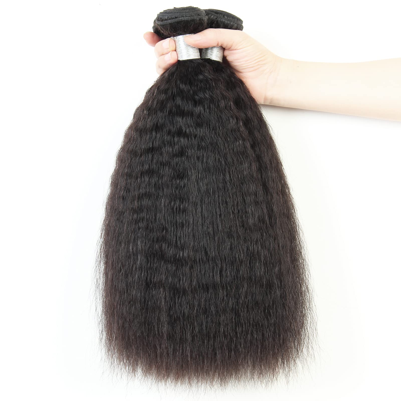 Kinky Straight Brazilian Human Hair Bundles Yaki Straight Hair Bundles 12A Unprocessed Virgin Human Hair Extensions Remy Same Direction Cuticle Real Natural Color 12 12 12 Inch